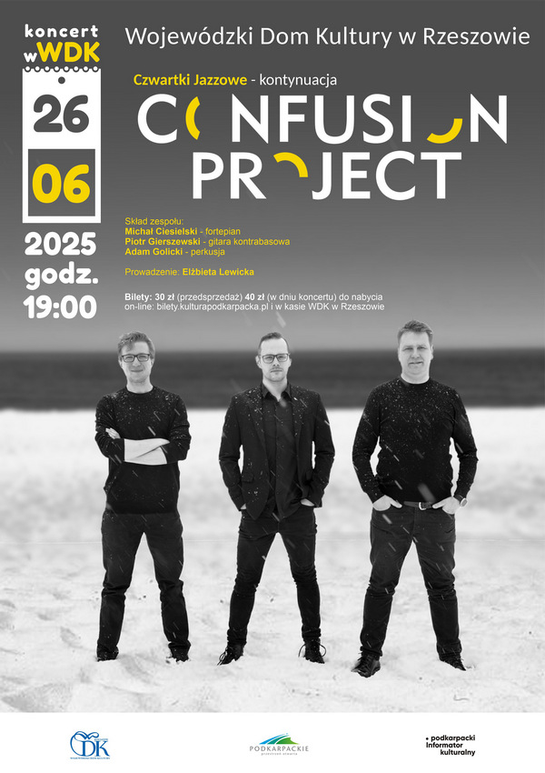 26 czerwca o godz. 19.00 Wojewódzki Dom Kultury w Rzeszowie zaprasza na koncert z cyklu „Czwartki Jazzowe – kontynuacja”. Zagra trójmiejska formacja jazzowa Confusion Project.