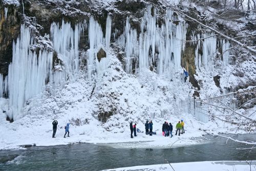 Zimą przy dużych mrozach miejscowość ta zamienia się w prawdziwą turystyczną mekkę. Przyjeżdża tu ogromna ilość turystów, by zobaczyć tworzące się na ścianach wielkiego urwiska gigantyczne sople lodu zwane lodospadami. Zimowa atrakcja jest o tyle ciekawa, że aby dostrzec pełnię jej piękna muszą być spełnione konkretne warunki: