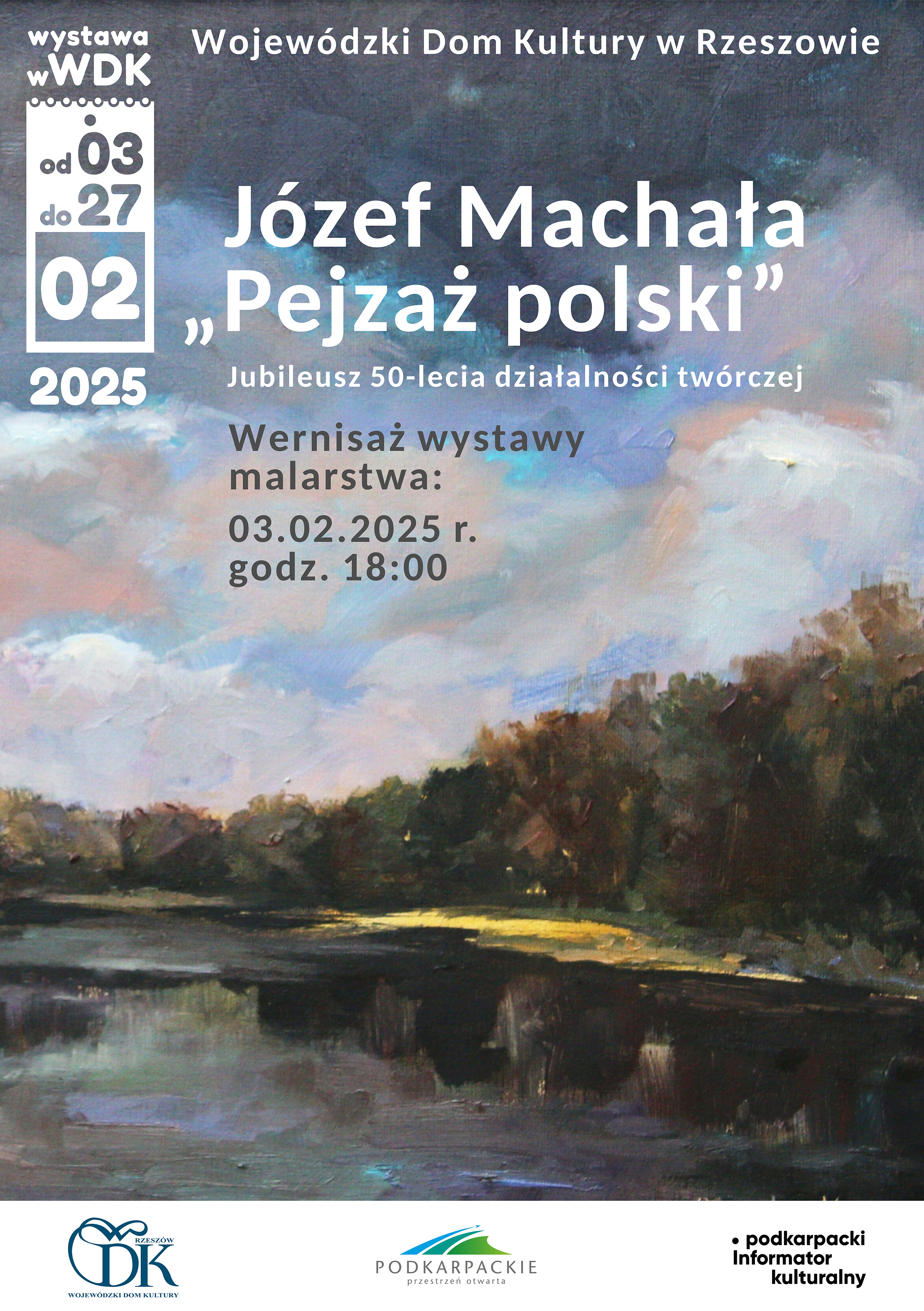 Wojewódzki Dom Kultury w Rzeszowie zaprasza w poniedziałek 3 lutego o godz. 18.00 na wernisaż wystawy malarstwa Józefa Machały pt. „Pejzaż polski”. Dzieła artysty będzie można oglądać w galerii WDK do 27 lutego.